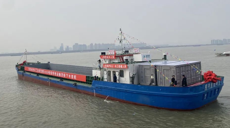 “船聯1號”由國網江蘇省電力有限公司聯合相關部門和企業共同打造,是長江流域最大載重噸位的電動貨船,將電能作為整艘船的唯一能源,實現零排放、低噪音、無污染。